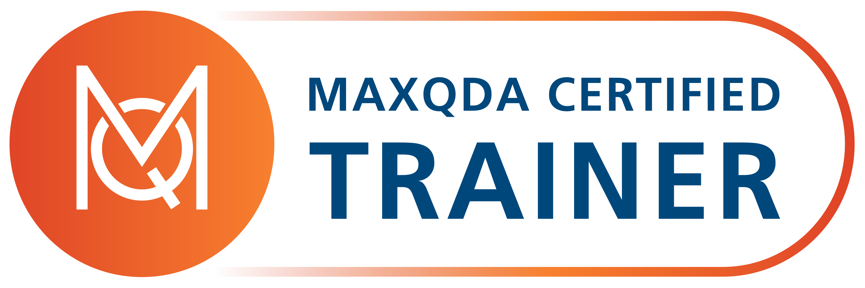 I am a fully certified in the MAXQDA Professional Certified Trainer programm, since its creation. This certification is the highest standard for Maxqda professional trainers, demonstrating their outstanding expertise and experience in using and teaching Maxqda!